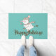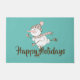 Le matelas de vacances Whimsical est doté d'un snowman de patinage sur glace avec foulard brun et rose et beanie sur aqua arrière - plan et texte personnalisable.