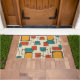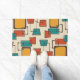 A stylish 1950's atomic era abstract art pattern with dark brown skewed squares in turquoise, burnt orange and gold.
