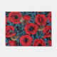 Paillasson Pavot rouge et brunes, feuilles bleus sur noir