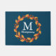 Célébrez la récolte d'automne avec ce tapis de couronnes avec des feuilles oranges, des glands bruns, des brindilles et des baies rouges! Préparez votre véranda avant pour la splendeur et l'air pur de l'automne! Customisez votre monogramme de famille et votre nom en écriture blanche.