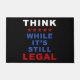 Drôle citation politique anti-réveil, "Pense, Tandis que c’est toujours légal". Idéal pour les conservateurs et tous les penseurs libres.