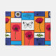 Boîtes colorées et pavots dessinés à la main, marguerite et papillon, motif vectoriel transparent