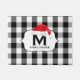 Preppy, plaid de buffle tendance, porte d'accueil de Noël personnalisées en noir et blanc - motif classique en damier noir et blanc avec nom de famille personnalisé et monogramme noir initial au centre. Le chapeau du Père Noël mignon est perché sur la lettre initiale. Accueil de vacances agréable pour les clients devant un cabine en rondins douillet pendant Noël ou dans un décor de prédilection pour les vacances. Un cadeau de Noël chic et monogrammé pour la famille ou un cadeau wedding shower unique pour les jeunes mariés.