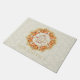 Ajoutez votre nom de famille à ce tapis de porte avec "Donnez Merci avec un coeur gracieux" dans une police manuscrite, entourée d'un congé d'automne et d'une couronne citrouille. L'Arrière - plan a une feuille subtile et un motif de glands.