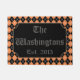 Une palette de couleurs orange et noir orne ce tapis de bienvenue d'Halloween. Personnalisez ce tapis de porte en changeant l'information en fonction de vos besoins. Le design est issu de l'art original.