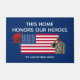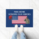 Patriotique USA Flag Doormat, adapté pour la Journée des anciens combattants et la Journée des forces armées. Le texte dit CETTE MAISON HONORE NOS HÉROS plus le nom de famille de l'espace réservé. La conception montre le drapeau des Stars & Stripes des États-Unis, un vétéran de l'armée et un grand pavot rouge. Cela ferait un grand cadeau aux maisons des anciens combattants, des militaires et des femmes, surtout pendant la Journée des anciens combattants, la Journée des forces armées et le Jour du Souvenir.