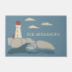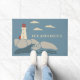 Ce matelas à plateau-coussin personnalisé est parfait pour votre chalet en bord de mer ou autre maison de plage. Il a une simple illustration nautique d'un phare en rouge, crème ou ivoire. Le phare se dresse sur une côte rocheuse avec des vagues qui s'écrasent en contrebas et des nuages crème dans le ciel. Le graphique est positionné contre un arrière - plan bleu français doux.