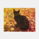 Photo de chat noir. Feuilles d'automne et chat noir.