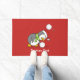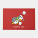 Un petit dessin de pingouin portant un chapeau santa et une écharpe verte se pliant pour obtenir une boule de neige en évitant une autre.