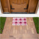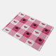 En hommage aux savoureux gourmandises de l'été, ce classique motif de nappes à pique-nique est orné d'une tranche de pastèque entourée de fourmis et de graines aux carrés blancs et d'un grill de bouilloire encadré de steaks, de champignons et de morceaux de charbon de bois dans l'autre.