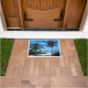 Paillasson Plage de sable avec palmiers et une porte vue sur