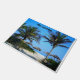 Vue sur l'océan avec palmiers et plage de sable. Parasols sur la plage, parfaits pour se détendre en pleine nature. Personnalisation à 100 %. Cliquez sur le bouton PERSONNALISER pour ajouter, déplacer, supprimer, redimensionner ou modifier les polices ou les graphiques.