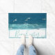 Bienvenue chez vous avec ce tapis de porte d'inspiration plage. Le design présente les flots animés de l'océan bleu et blanc de Maroubra Beach à Sydney, en Australie. Le lettrage moderne comporte les mots "Beach vibes".