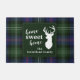 Cute home sweet home couverture de Noël vous pouvez facilement customiser en cliquant sur le bouton "Personnaliser", Avec silhouette de cerf et clan tartan Sutherland en vert, et chèque violet. Parfait pour votre porte d'entrée pendant les vacances. Fait un grand cadeau de ménage