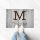 Pays rustique gris clair planches de grange porte avec votre nom de famille personnalisé et lettre monogramme en brun foncé. Obtenez un élégant look de ferme chic pour votre porche avant cet automne avec ce élégant tapis de portes en planches de bois. Offrez-en un cadeau très bien pensé aux jeunes mariés ou aux nouveaux propriétaires.