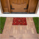 Tapis de porte avec un joli imprimé de flocons de neige rouge et or de Noël. Customisez ce tapis ou achetez tel quel.