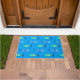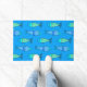 Tapis de porte dans un motif de poisson moderne et rétro, en turquoise, aqua, vert citron et bleu ciel, sur un arrière - plan bleu cérulean profond