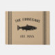 Bienvenue dans votre demeure avec ce charmant tapis de portes rustique qui est parfait pour votre maison de plage, maison de rivage ou maison côtière. Le design personnalisé sur le thème de la pêche comprend votre nom de famille en lettres noires, ainsi que votre année établie et une illustration de poisson. La bande de corde détaillant un arrière - plan bronzé classique complète la conception.