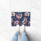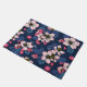 Fleurs de pommes et abeilles dessinées à la main sur un arrière - plan bleu foncé