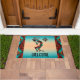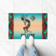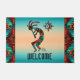 Personnalisez ce "One of a Kind" unique Kokopell Doormat Sud-Ouest!  Il comprend un Kokopell sud-ouest jouant de la Flûte et dansant sous le soleil sur un Arrière - plan turquoise et orange coucher de soleil...Entouré d'une frontière sud-ouest en Turquoise, Orange et Noir!