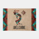 Personnalisez ce "One of a Kind" unique Kokopell Doormat Sud-Ouest! Il comprend un Kokopell sud-ouest jouant la Flûte et dansant sous le soleil sur un Arrière - plan tan...Entouré d'une frontière sud-ouest en Turquoise, Orange et Noir!