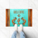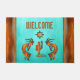 Personnalisez ce "One of a Kind" unique au sud-ouest de Kokopelli Doormat! Il comprend deux Kokopelli en cuivre jouant la Flûte et dansant autour d'un cactus sous le soleil sur un Arrière - plan Turquoise...Entouré d'une bordure en cuivre!