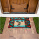 Personnalisez ce tapis de porte Kokopelli Sud-Ouest "One of a Kind" ! Il comprend un Kokopelli jouant la Flûte et dansant sous le soleil sur un Arrière - plan turquoise et orange coucher de soleil...Entouré d'une frontière sud-ouest en Turquoise, Orange & Noir!