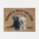 Labrador Retriever Amoureux des chiens personnalisé mat de bienvenue. Ce tapis de bienvenue peut être personnalisé avec le nom de votre chien, le slogan peut aussi être changé ou vous pouvez utiliser une photo de votre propre chien (assurez-vous qu’elle est transparente). Texte : Cooper & Sally vivent ici.... Tous les traitements sont les bienvenus Modifier le design pour changer la police, les couleurs et la couleur arrière - plan. Lorsque vous remplacez l'image de votre chien, utilisez une image transparente. Fait un cadeau merveilleux pour une fête de ménage, vacances, amoureux de les chiens et la plupart de toutes les occasions.