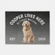 Labrador Retriever Amoureux des chiens personnalisé mat de bienvenue. Ce tapis de bienvenue peut être personnalisé avec le nom de votre chien, le slogan peut aussi être changé ou vous pouvez utiliser une photo de votre propre chien (assurez-vous qu’elle est transparente). Texte : Cooper vit ici... Tous les traitements sont les bienvenus Modifier le design pour changer la police, les couleurs et la couleur arrière - plan. Lorsque vous remplacez l'image de votre chien, utilisez une image transparente. Fait un cadeau merveilleux pour une fête de ménage, vacances, amoureux de les chiens et la plupart de toutes les occasions.