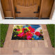 Cette Porte Mat ajoutera de la couleur à votre vie, et un accueil chaleureux à vos invités. L'oeuvre est une photo abstraite originale de ZoeSPEAK d'un bougainvillier à la lumière du soleil de l'après-midi. Les fleurs du buisson sont en fait minuscules et blanches. Les parties aux couleurs vives qui les entourent sont appelées bractées. Sur cette photo, les bractées sont un rose chaud profond, presque brillant. Des feuilles verts et une ombre bleue cool sur un mur en stuc jaune pâle complètent cette image colorée. Il y a un texte facultatif qui dit "Bienvenue". Ceci est configuré pour que vous personnalisiez ou supprimiez si vous le souhaitez.