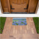 Ce tapis de portes présente une peinture d'hortensias sur la mer, peinte par Brendon Loughlin, un artiste de Guilford, Connecticut.