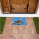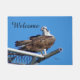 Un tapis de portes avec la photo d'un balbuzard pêcheur ou d'un faucon debout sur sa boîte de nid. Vous pouvez modifier ou supprimer le mot Bienvenue. Osprey a été photographié dans le sud de la Floride.
