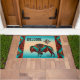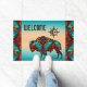 Personnalisez ce tapis de porte unique "One of a Kind" de Buffalo Sud-Ouest! Il comprend un Buffalo sud-ouest sur un Arrière - plan de soleil turquoise et orange...Entouré d'une frontière sud-ouest en Turquoise, Orange et Noir!
