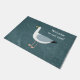 Une mouette coquine debout au bord de l'océan. Parfait pour ceux qui sont inséparables et la côte. Texte : Bienvenue dans Notre nid, mais peut être customisé ou supprimé.