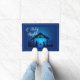 Ce mat de porte présente les tons bleus profonds de la scène du manager avec le texte de O Holy Night dessus. Bordures de bleu royal. Customisez ce tapis de porte ou achetez tel que conçu. Image stock avec l'aimable autorisation de www.freepik.com