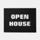 PORTE OUVERTE MAISON pour porte d'entrée. Panneau de sol de tapis d'entrée noir et blanc 18x24 pour couloir intérieur ou porche extérieur. Design de typographie de script élégant. Idée de cadeau mignonne pour une nouvelle maison, fête du ménage, lieu de mariage, magasin, magasin, bureau d'entreprise, affaires immobilières, immobilier, vente de maisons, propriétaire immobilier, courtier etc. Arrière - plan de couleur et texte personnalisable. L'accueil personnalisé est offert dans les panneaux de porte disponibles en petite et grande taille. Décor / décorations personnalisables pour votre maison ou entreprise moderne.