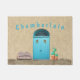 Bienvenue à la maison ou au travail avec ce tapis de porte coloré d'inspiration sud-ouest avec un mélange de photographie et d'art numérique. Il comprend des portes doubles bleues avec contre Kokopelli, une fenêtre de palladium au-dessus et des cactus à pagaie en pot. Personnalisez le texte avec un nom, supprimez le texte ou cliquez sur personnaliser pour sélectionner un style, une taille et une couleur de type que vous préférez.