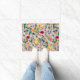 Paillasson Poulets et fleurs sauvages sur coton bonbon rose