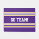 Ce tapis de porte pourpre audacieux, comportant les rayures colorées par or, ajoute un bruit de couleur. Personnaliser avec votre nom ou message.