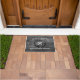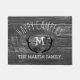 Le cadeau décoré d'un monogramme et rustique de décor de maison de camping pour des rvers, les voyageurs, les randonneurs, les campeurs, les chasseurs de cerfs communs ou les amoureux des animaux et la natte campante personnalisée extérieure d'amants de nature lit les "profondément satisfaits dans le lettrage incurvé par sembler manuscrit et gribouillé au-dessus des andouillers noirs de cerfs communs encadrant un style simple, initiale de monogramme de famille avec un modèle des textes pour ajouter le nom de famille ci-dessous dans l'assortiment, texte lunatique de style. Sur un fond de vieux barnwood rustique et grayed. Grand cadeau de retraite, aussi. Soyez parfait devant un rv, une maison d'été ou un cabine de rondin confortable dans les bois.