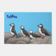 Des macareux se reposent sur les rochers. Le texte personnalisable "Puffins" apparaît également. Le Puffin Atlantique (Fratercula arctica) se nourrit principalement de plongée dans l'eau. Ils se reproduisent dans de grandes colonies sur des falaises côtières ou des îles au large de l'Atlantique Nord. Après la saison de reproduction, les macareux versent les parties extérieures colorées de leur bec, laissant un bec plus petit et plus pâle. Leurs ailes courtes sont adaptées pour nager avec une technique de vol sous l'eau. En l'air, ils battent rapidement leurs ailes (jusqu'à 400 fois par minute) en vol rapide, volant souvent au-dessus de la surface de l'océan.
