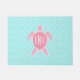 Une natte comportant une illustration d'une tortue de mer rose au-dessus d'un arrière - plan bleu lumineux de quatrefoil. Personnalisez le monogramme.