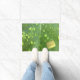 L'oeuvre de ce Doormat est une photo originale de ZoeSPEAK de gouttes de pluie sur une feuille de schefflera. La photo de clôture montre les veines de la feuille verte de printemps, avec des gouttelettes d'eau aléatoires le décorant avec des reflets vert clair, en trois dimensions. Il y a un autocollant jaune avec le mot "Bienvenue" dessus. Cette option est facultative. Le texte peut être modifié, ou l'autocollant et le texte entier peuvent être supprimés si vous le souhaitez.