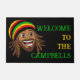 Colourful welcome doormat featuring a smiling Rastafarian man. The customisable text reads WELCOME TO THE (FAMILY NAME), but you could change it to a different slogan or funny quote etc