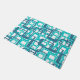 Ce tapis de porte a un design moderne du milieu du siècle de rectangles ouverts en bleu sur rectangles ouverts en bleu rouge oeuf de robin.