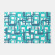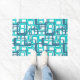 Ce paillasson présente un design moderne de milieu de siècle avec des rectangles ouverts en bleu sur des rectangles ouverts en bleu œuf de robin.