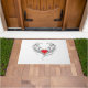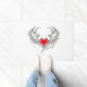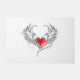 Coeur rouge peint de façon artistique avec ailes d'ange gris, décoré de contour lisse noir.