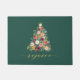 Conçu spécialement pour la saison des fêtes, ce joli tapis porte un élégant sapin de Noël fleuri aux teintes aquarelles de bordeaux, d'orange, de rose, de blanc et de vert.Un arrière - plan contrastant bleu-vert foncé a un texte doré réjouissant pour accueillir joyeusement les invités à votre maison.