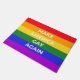 Cette oeuvre d'art comporte un arc-en-ciel et la phrase "Rendre l'Amérique gay".