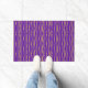 Ce mat de porte a un design géométrique Mardi Gras de sorte d'ovales plats répétant à travers le design en or et vert sur un champ de violet.